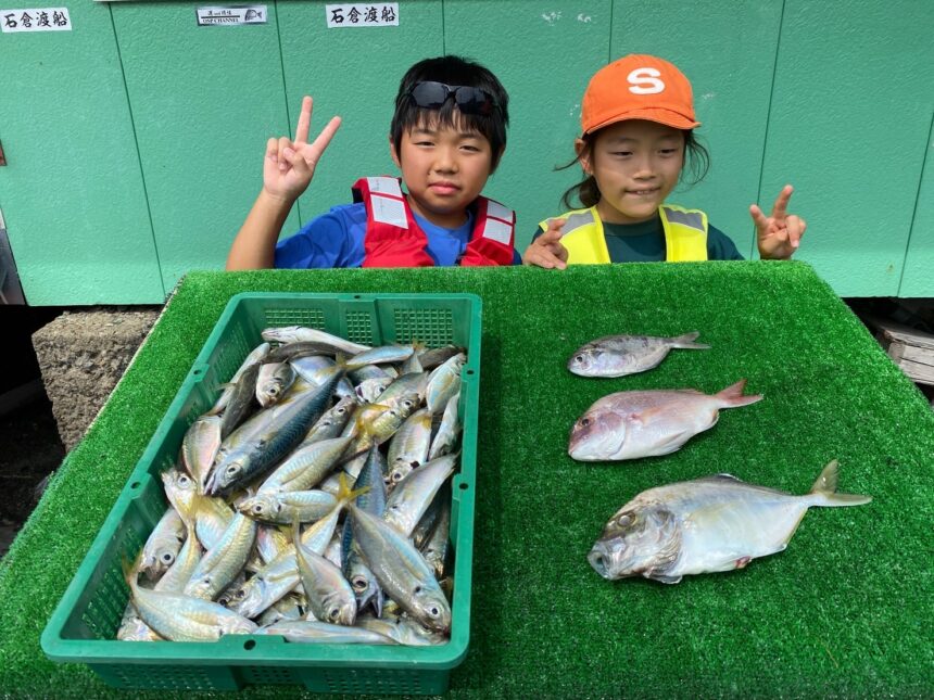 カセ釣りでたいすけ君&さくたろう君がアジをゲット。