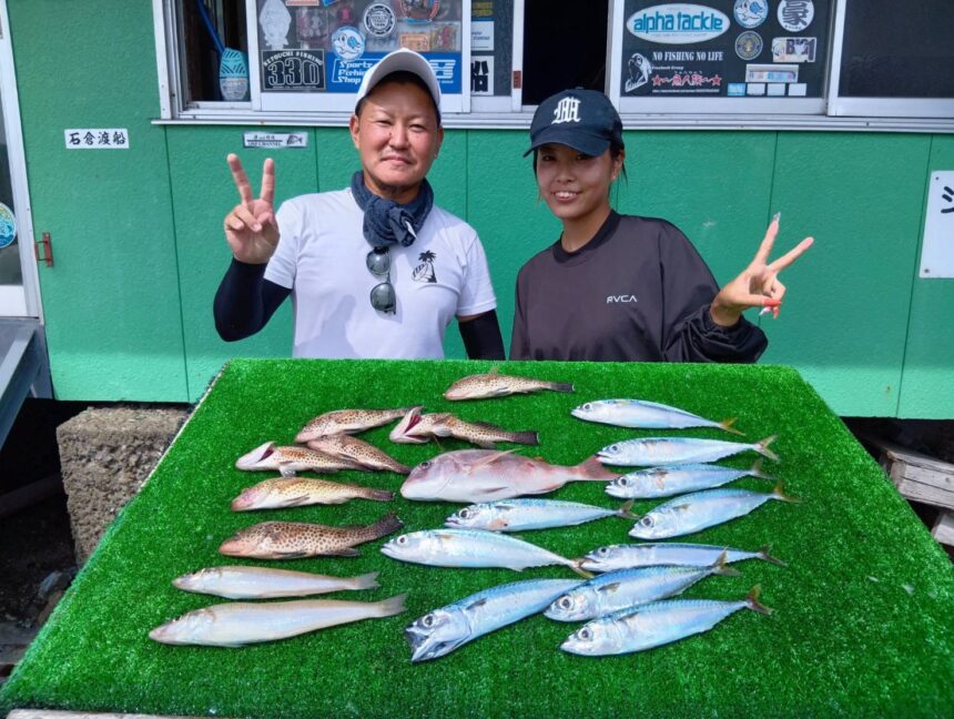 船外機ボートで加藤さんがイサキ、シマアジ、カワハギ、オオモンハタをゲット。