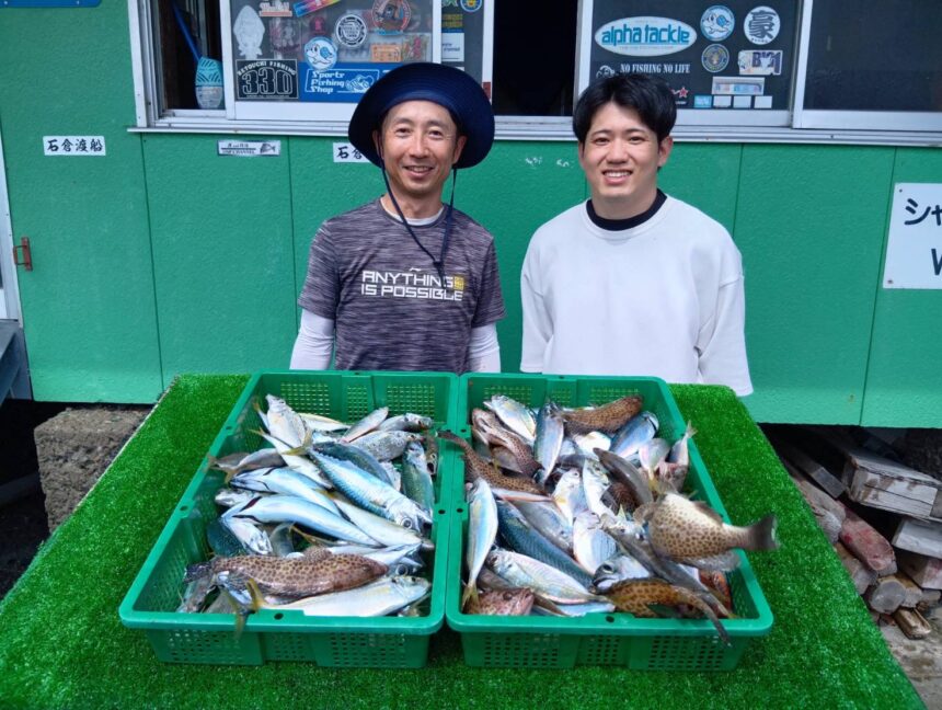 船外機ボートで加藤さんがイサキ、シマアジ、カワハギ、オオモンハタをゲット。