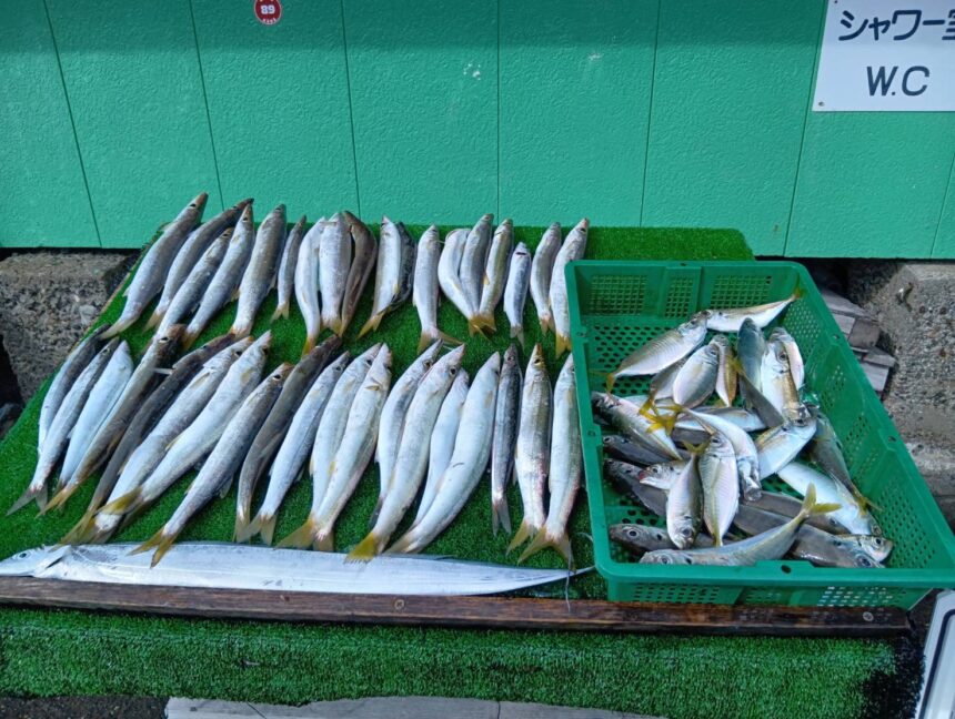 カセ釣りで匹田さんがカマス、アジ、タチウオをゲット。