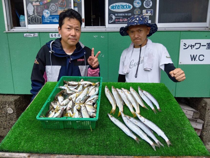 手漕ぎボートで小出さんがアジ、カマスをゲット。