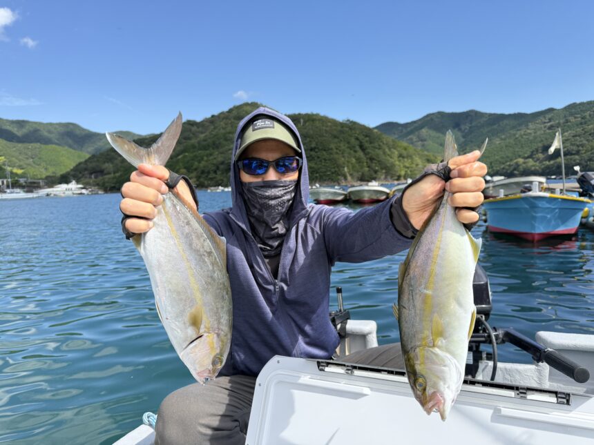 船外機ボートで倉田さんがオオモンハタ、ツバスをゲット。