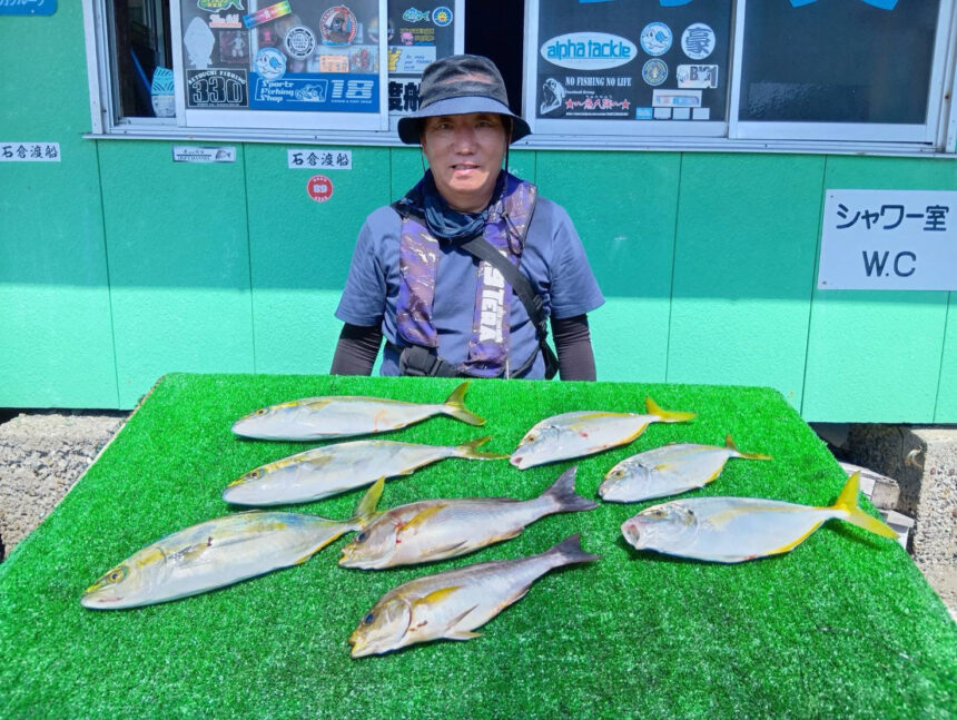 船外機ボートで水谷さんがシマアジ、イサキ、ツバスをゲット。