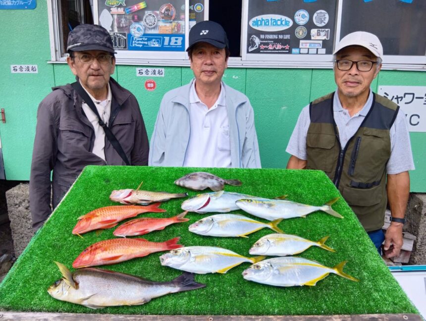 船外機ボートで山上さんがシマアジ、イサキ、ツバスをゲット。