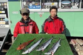 船外機ボートで大威さんがサゴシ、ホウボウをゲット。