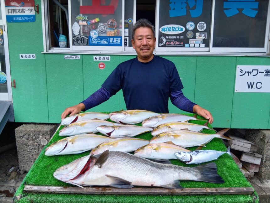 船外機ボートで倉田さんがオオモンハタ、ツバスをゲット。