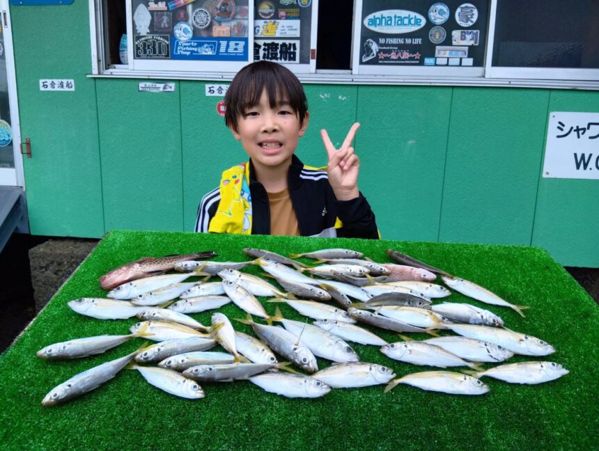手漕ぎボートで山本さんがアジ、サバをゲット。