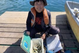 手漕ぎボートで山上さんがアジをゲット。