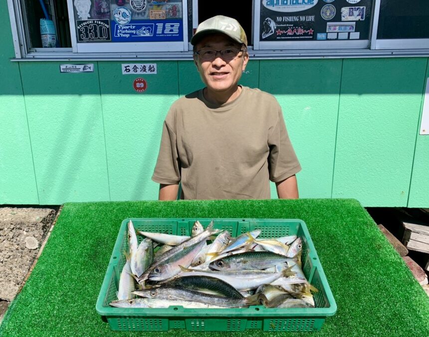 手漕ぎボートで星野さんがアジ、カマス、サバをゲット。