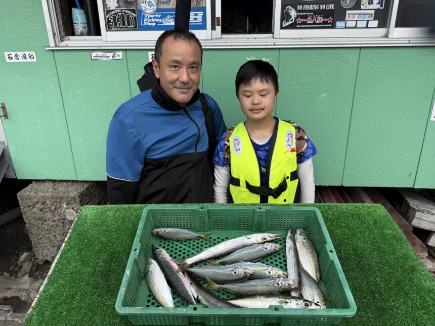 カセ釣りで山口さんがアジ、カマス、サバをゲット。