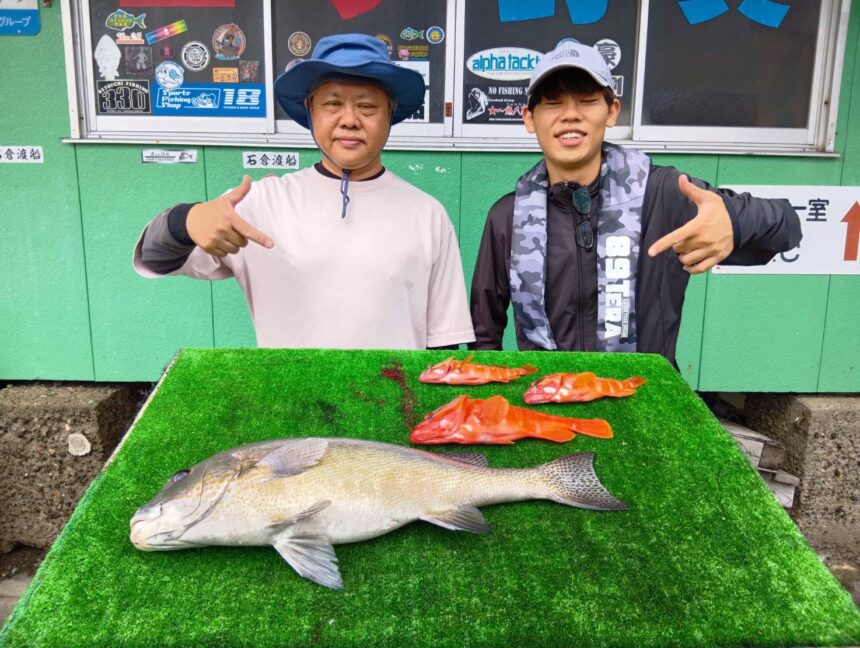船外機ボートで戸田さんがコロダイ、アカハタをゲット。