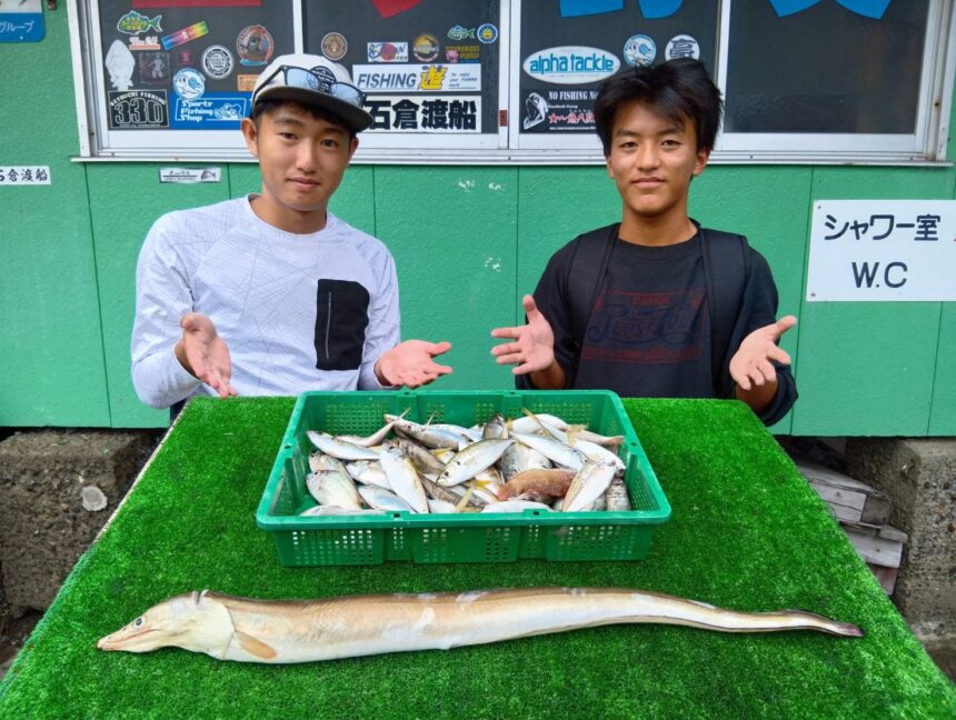 手漕ぎボートで折戸さんがアジ、ハモをゲット。