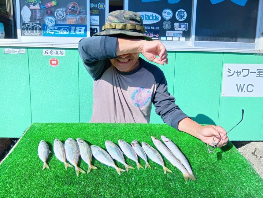 手漕ぎボートで安藤さんがアジ、カマスをゲット。