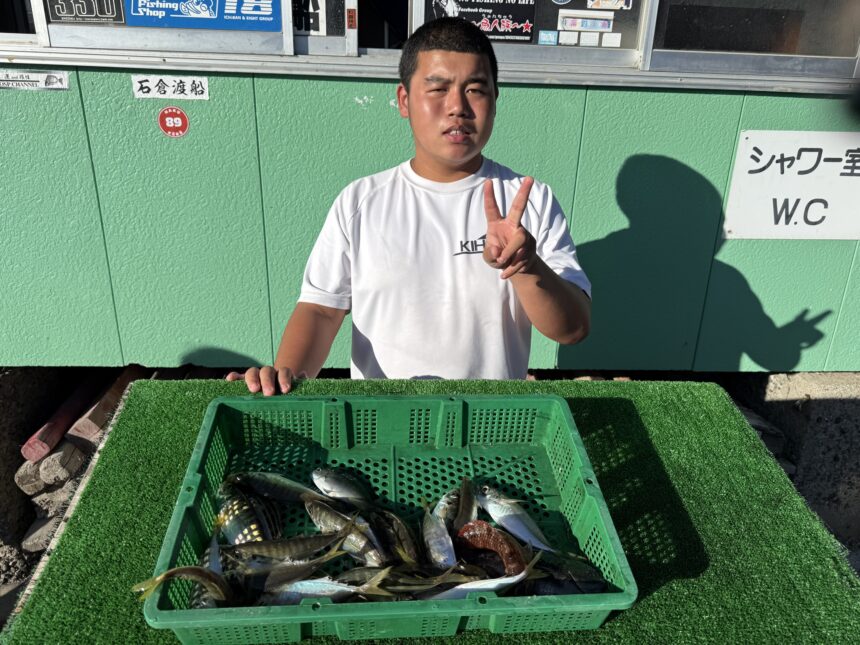 カセ釣りで水野さんがアジ、サバ、アイゴをゲット。