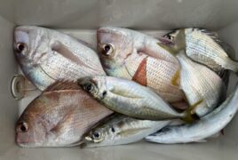 船外機ボートで松場さんがマダイ、アジをゲット。