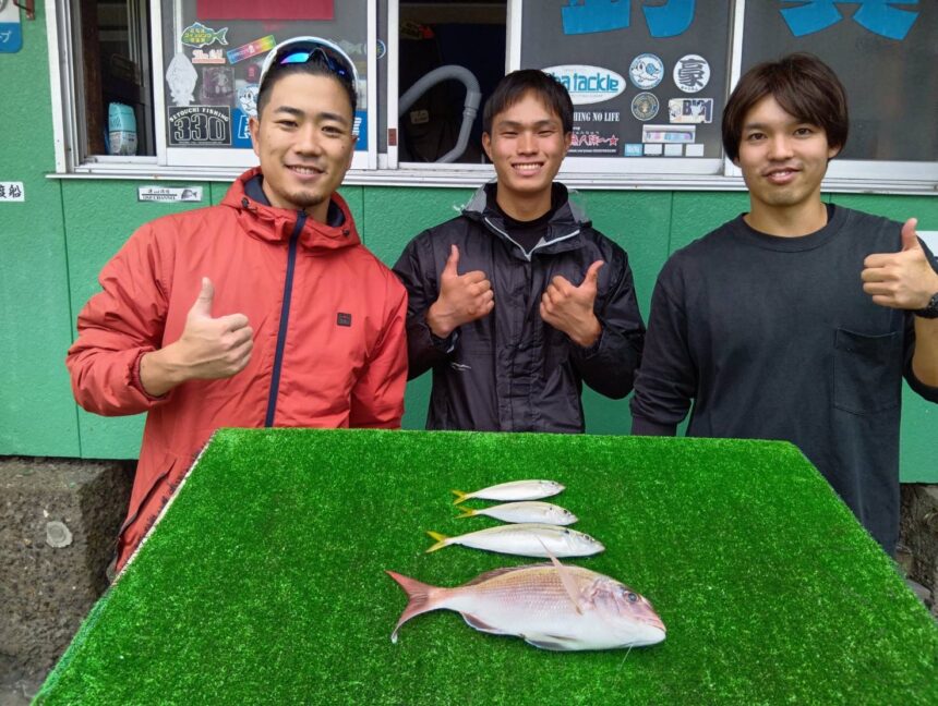 手漕ぎボートで星野さんがマダイ、アジ、ヘダイをゲット。