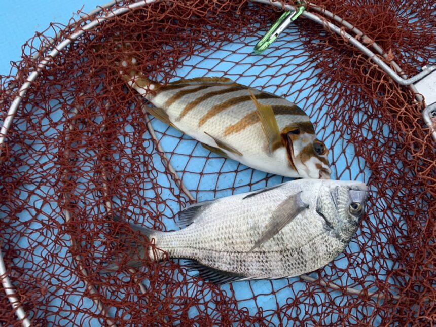 カセ釣りで河角さんがチヌ、タカノハをゲット。