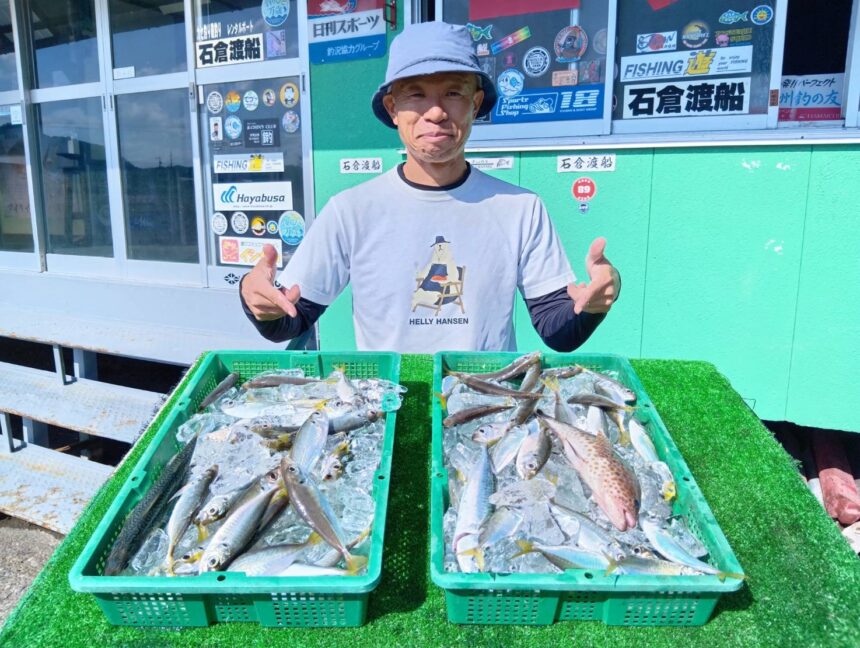 船外機ボートで伊藤さんがコロダイ、ツバメウオ、ツバスをゲット。