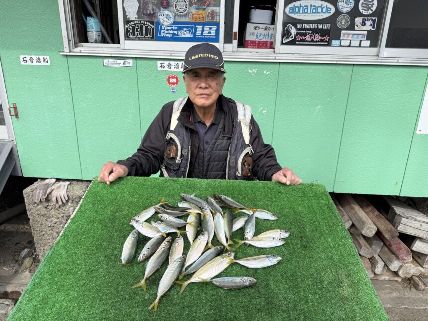 カセ釣りで大谷さんがアジ、カマス、シマアジをゲット。