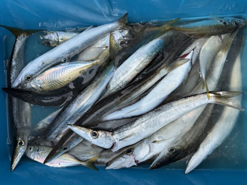 手漕ぎボートで黒柳さんがカマス、アジをゲット。