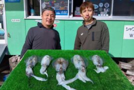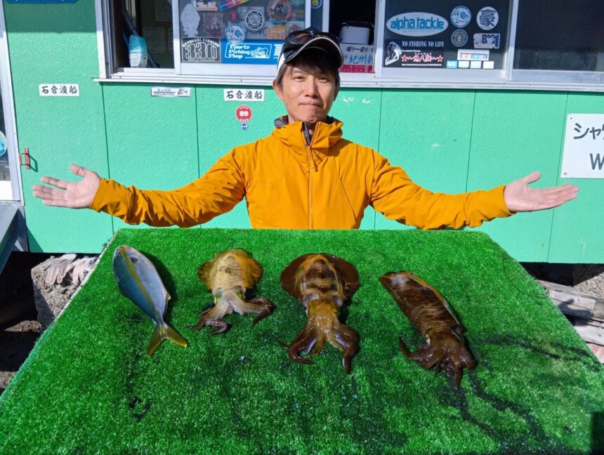 船外機ボートで吉田さんがアオリイカ、ツバスをゲット。