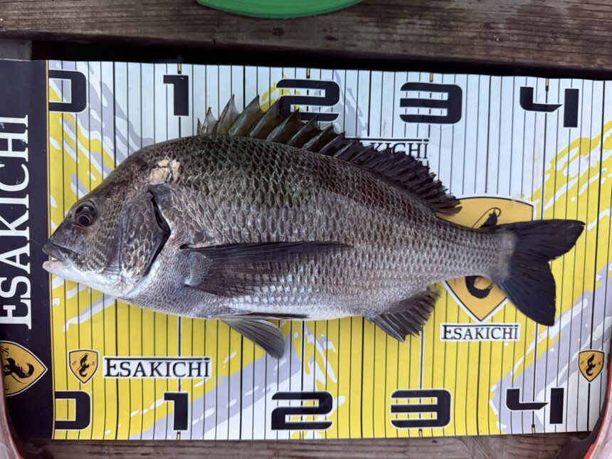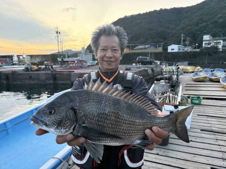 カセ釣りで安藤さんがチヌ44㎝をゲット。