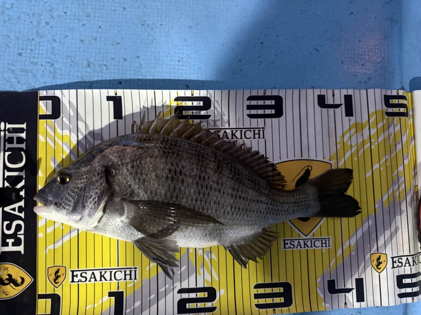 カセ釣りですしんちゃんがチヌをゲット。