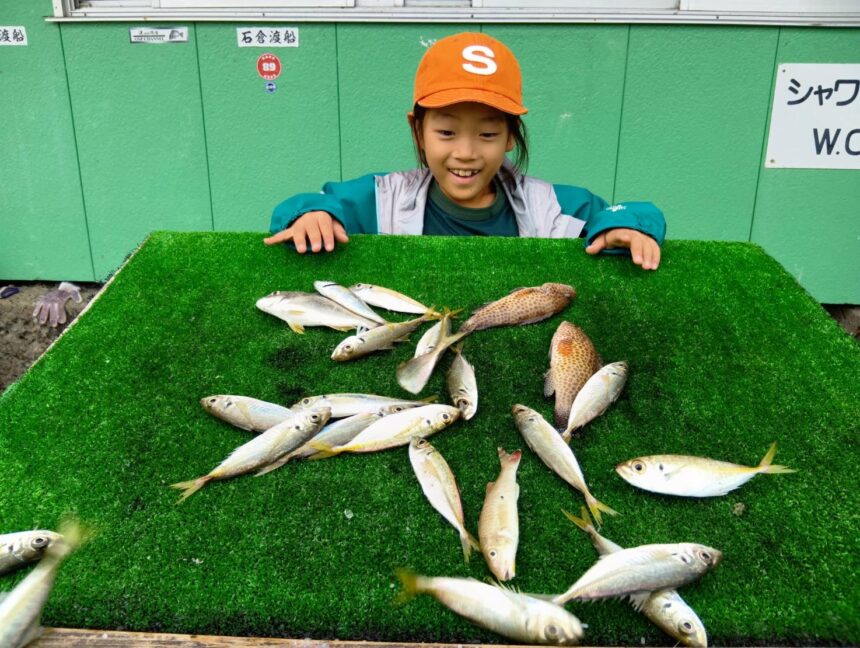手漕ぎボートで星野さんがアジ、カマスをゲット。