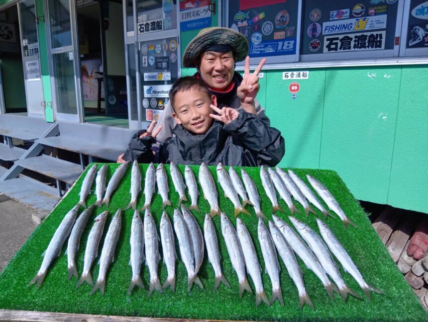 手漕ぎボートで星野さんがアジ、カマスをゲット。