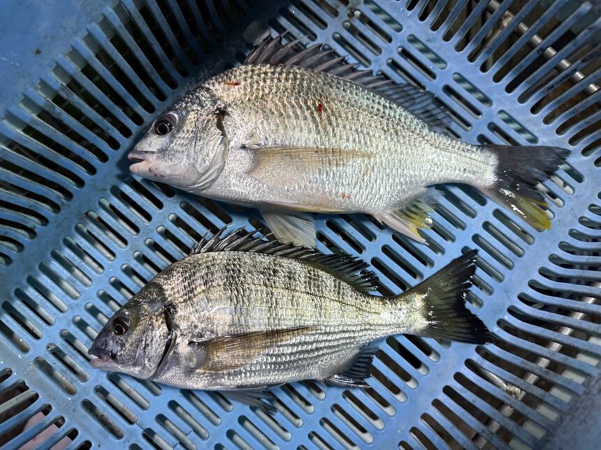 カセ釣りで村田さんがチヌ、キビレをゲット。