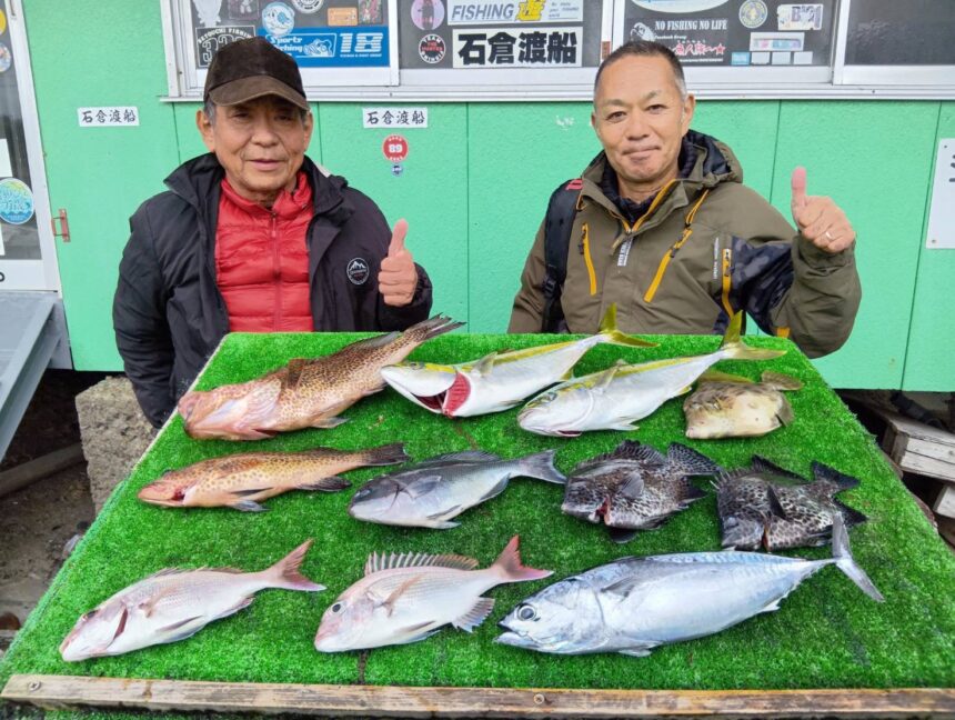 船外機ボートで倉田さんがツバス、アカハタ、グレをゲット。