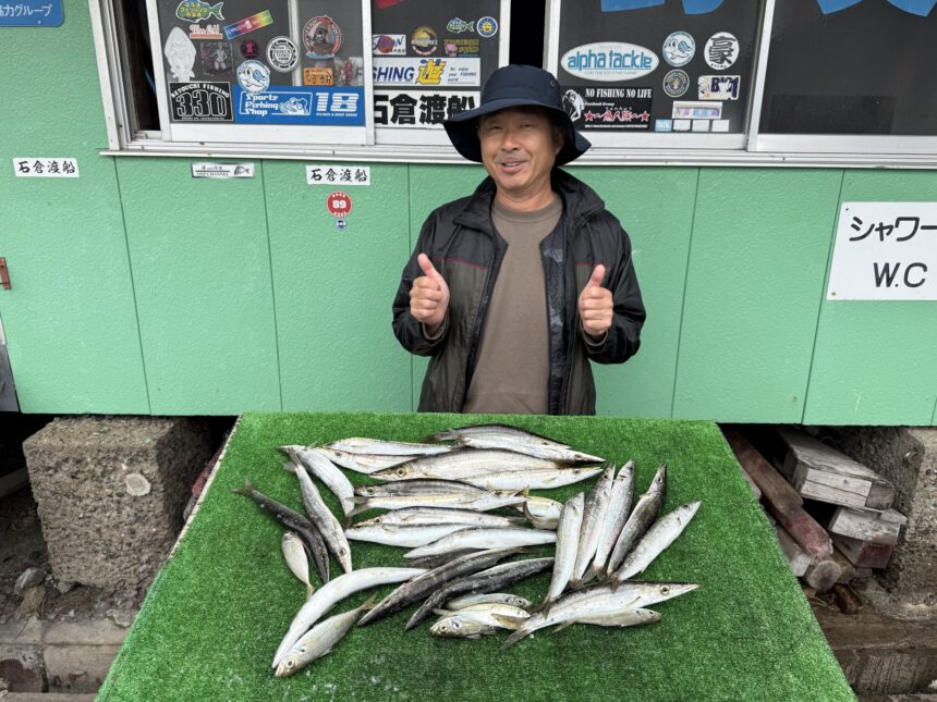 手漕ぎボートで大西さんがカマス、アジをゲット。
