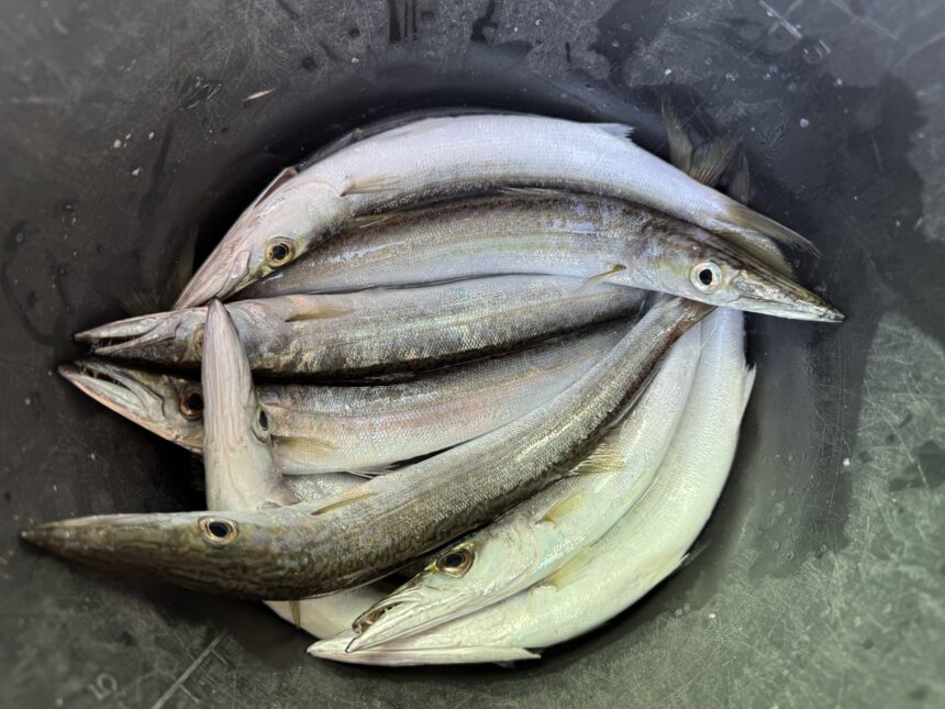 手漕ぎボートで村瀬さんがカマス、アジをゲット。