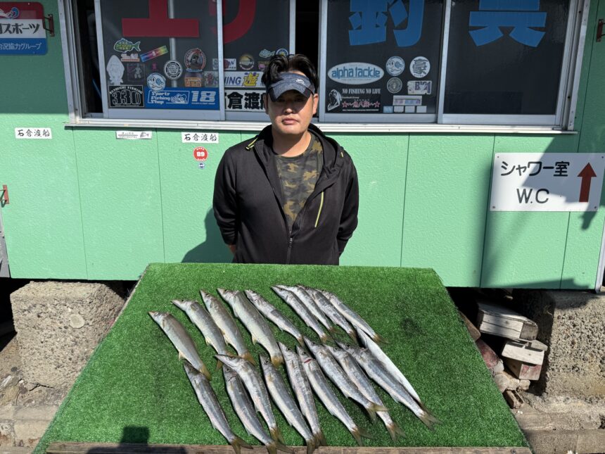 手漕ぎボートで村瀬さんがカマス、アジをゲット。