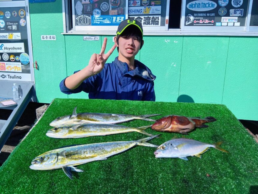船外機ボートで滝沢さんがカマス、イサキ、シマアジ、アジをゲット。