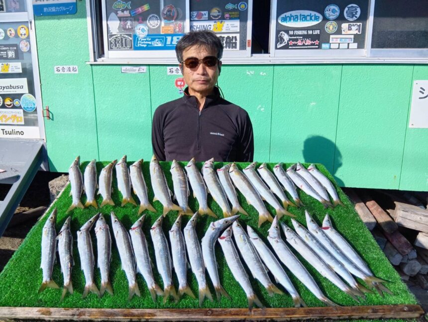 船外機ボートで滝沢さんがカマス、イサキ、シマアジ、アジをゲット。