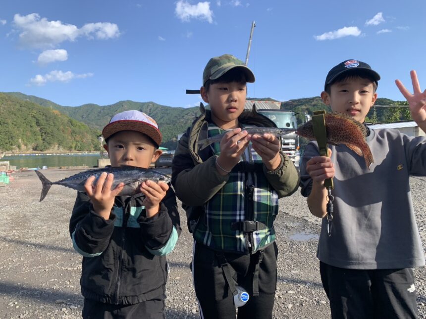 2025.11.10 UP ボート釣り釣果 船外機ボートでそうま君、ゆうと君、さくと君がソウダカツオ、カマス、オオモンハタをゲット。 釣行日 2025年11月10日 釣り人 そうま君、ゆうと君、さくとくん