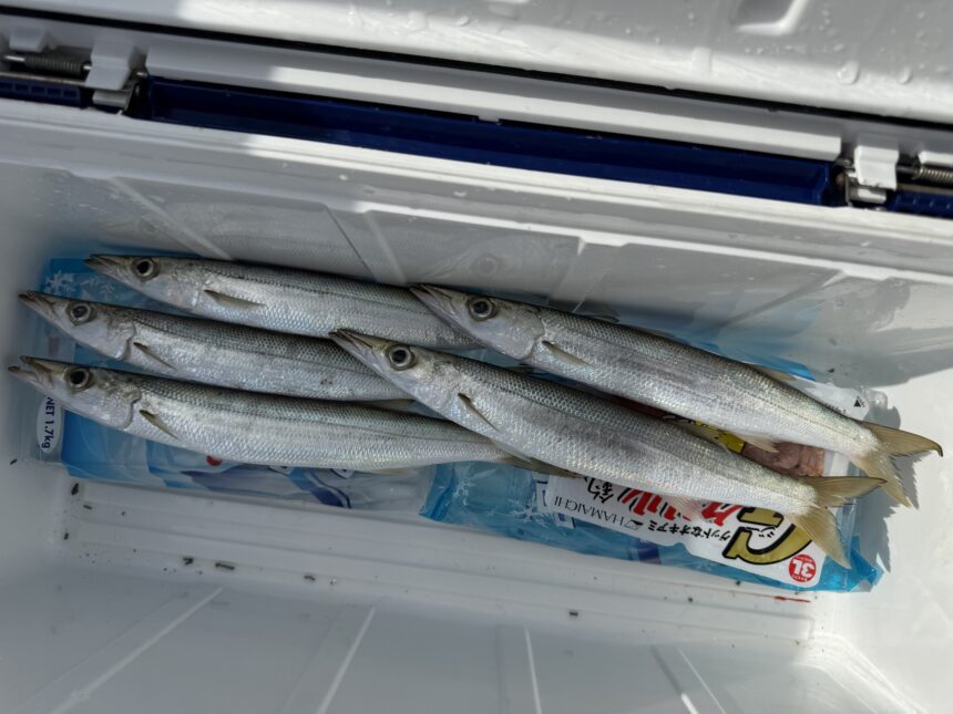 船外機ボートで竹田さんがシマアジ、シイラ、イサキ、ツバスをゲット。