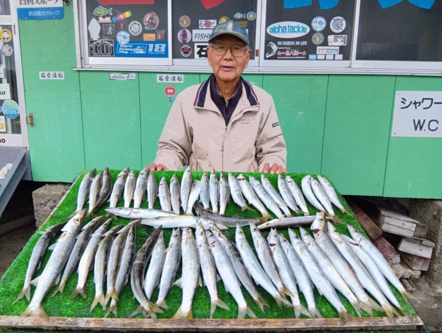 船外機ボートで竹田さんがシマアジ、シイラ、イサキ、ツバスをゲット。