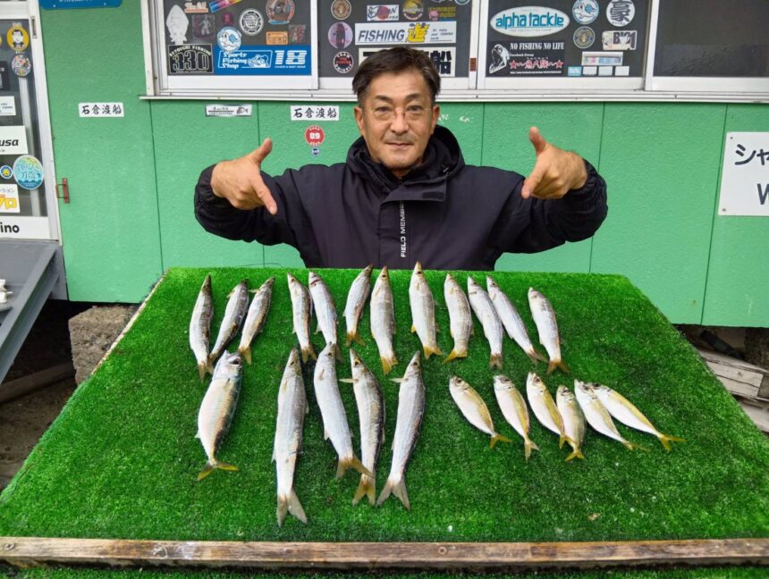 船外機ボートで水野さんがツバス、オオモンハタ、シマアジをゲット。