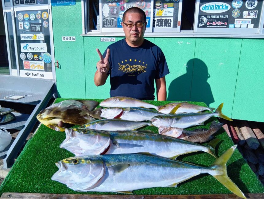 船外機ボートで宮崎さんがワラサ、ツバス、シオ、オオモンハタ、ツバメウオをゲット。