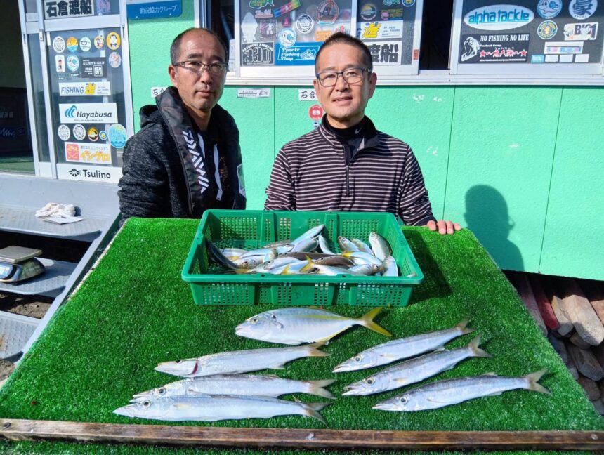 手漕ぎボートで牧野さんがアジ、カマス、シマアジをゲット。
