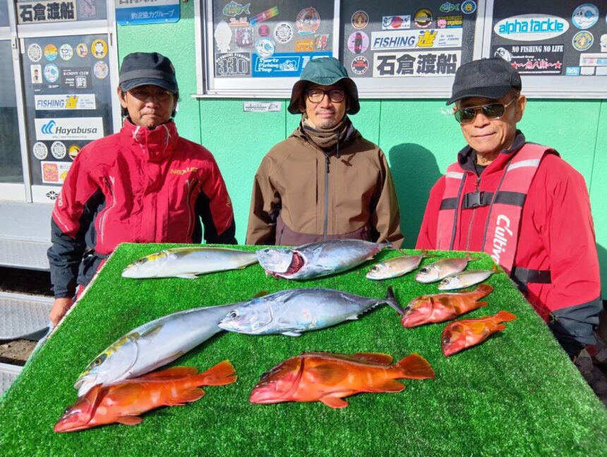 船外機ボートで奥山さんがシマアジ、ツバス、イサキ、カマスをゲット。