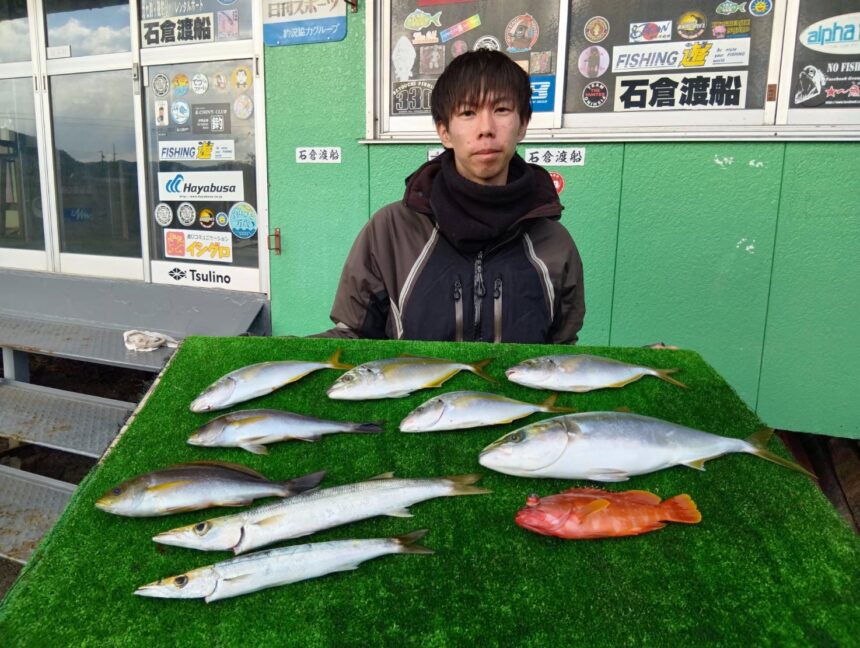 船外機ボートで奥山さんがシマアジ、ツバス、イサキ、カマスをゲット。
