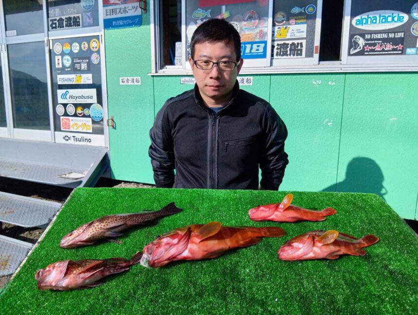 船外機ボートで柴田さんがアカハタ、カサゴ、オオモンハタをゲット。