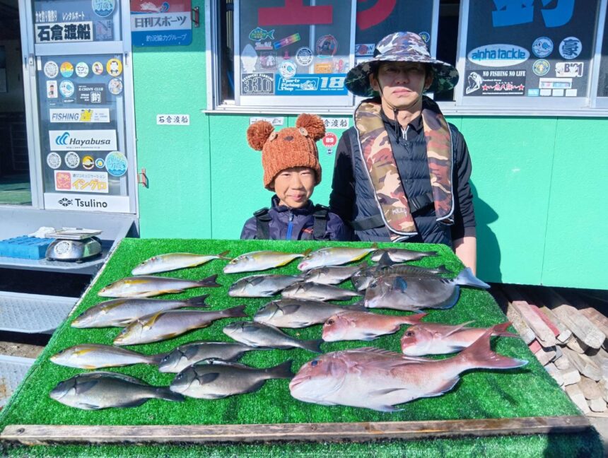 船外機ボートで斎田さんがシマアジ、グレ、マダイ、イサキ、サンノジをゲット。