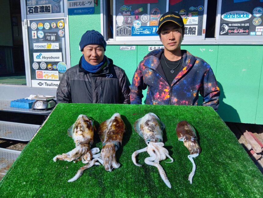 船外機ボートで松村さんがアオリイカ、スミイカをゲット。