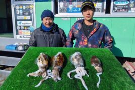 船外機ボートで松村さんがアオリイカ、スミイカをゲット。