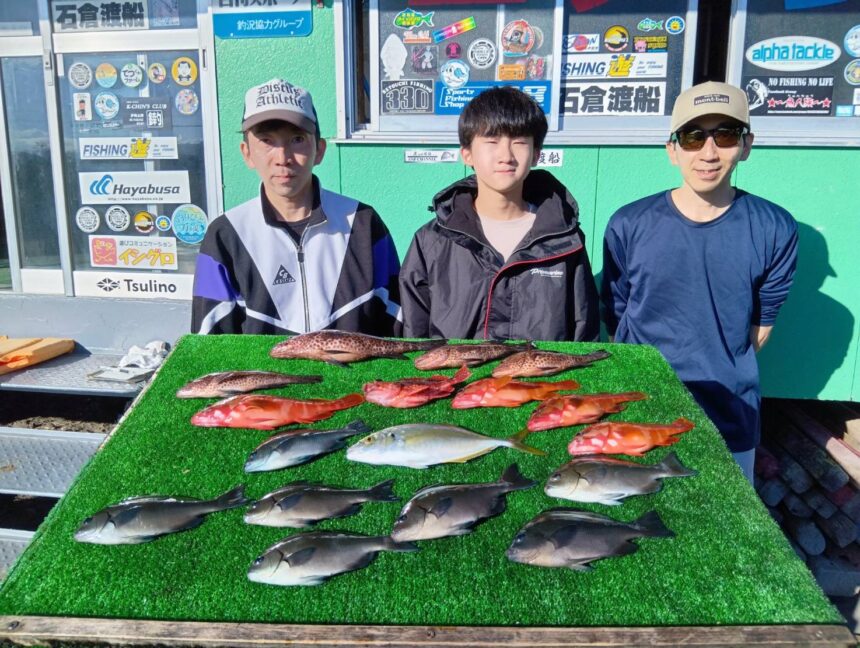 船外機ボートで岩田さんがグレ、マダイ、メイチ、サンノジをゲット。