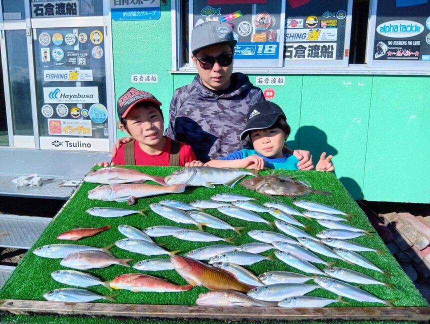 船外機ボートで林さんがマダイ、アジ、シロアマダイ、シマアジ、マトウダイをゲット。